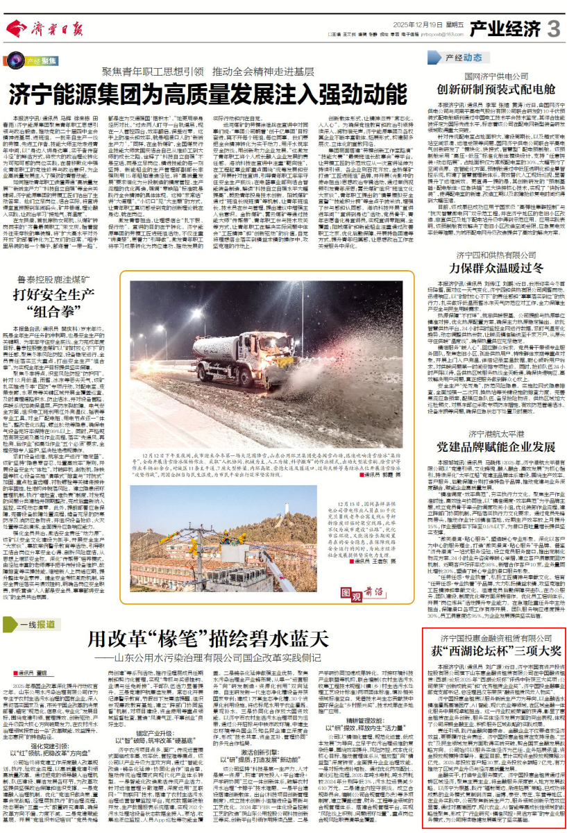 本报济宁讯(通讯员 刘广源)近日,世界杯体育在线(中国)唯一官方网站旗下山东惠金融资租赁有限公司在中国融资租赁(西湖)论坛2025年“西湖论坛杯”评选中斩获三大奖项:公司荣获“创新成就奖”和“优秀租赁企业奖”,世界杯体育在线(中国)唯一官方网站金融事业部党支部书记、总经理吕汉东荣获“融资租赁风云人物奖”。